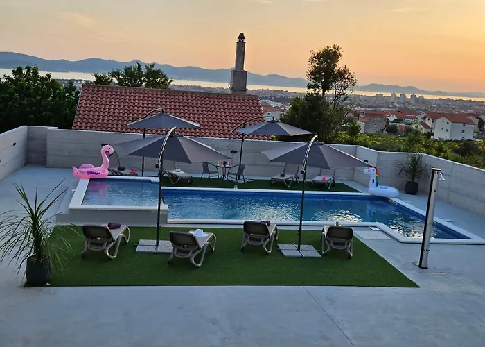 Az úszómedencét kínáló Kuca Za Odmor Donata Apartman apartman 4 km-re helyezkedik el a Pozdrav Suncu területétől. A mikrohullámú sütőt, elektromos vízforralót és hűtőt kínáló, teljesen felszerelt konyhával ellátott szálláshely 25 perces sétára van Zára központjától.